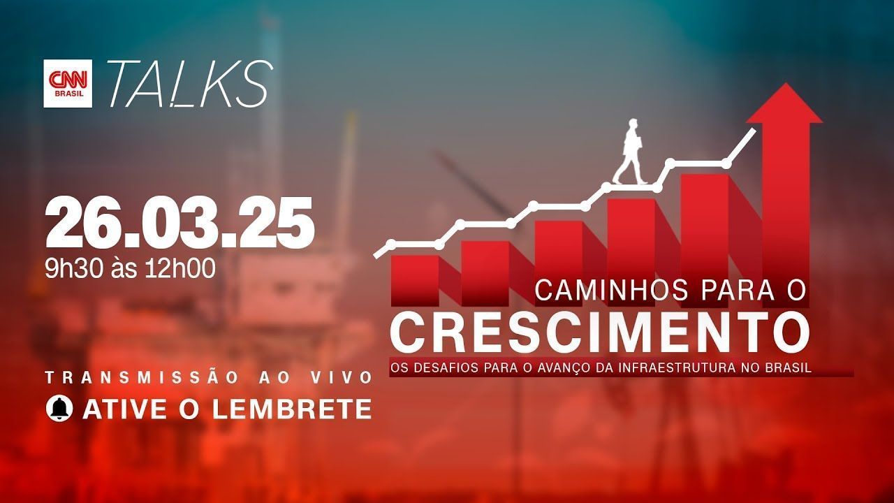 Para debater os desafios para o avanço da infraestrutura no Brasil, a CNN realiza o evento CNN Talks Caminhos para o Crescimento. Com mediação do diretor de Jornalismo em Brasília, Daniel Rittner, o evento recebe o ministro das Cidades, Jader Filho, o presidente do TCU, Vital do Rêgo, e os governadores de São Paulo, Goiás e Mato Grosso, Tarcísio de Freitas, Ronaldo Caiado e Mauro Mendes, respectivamente.